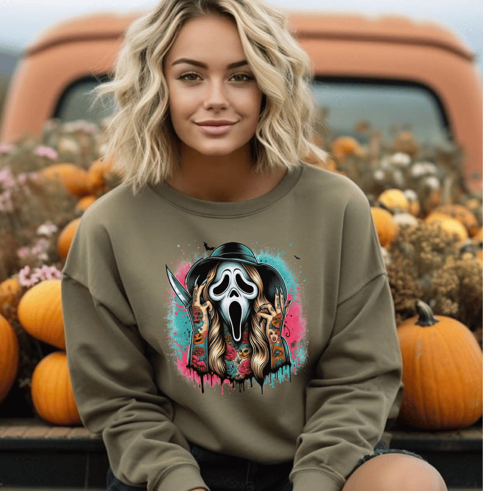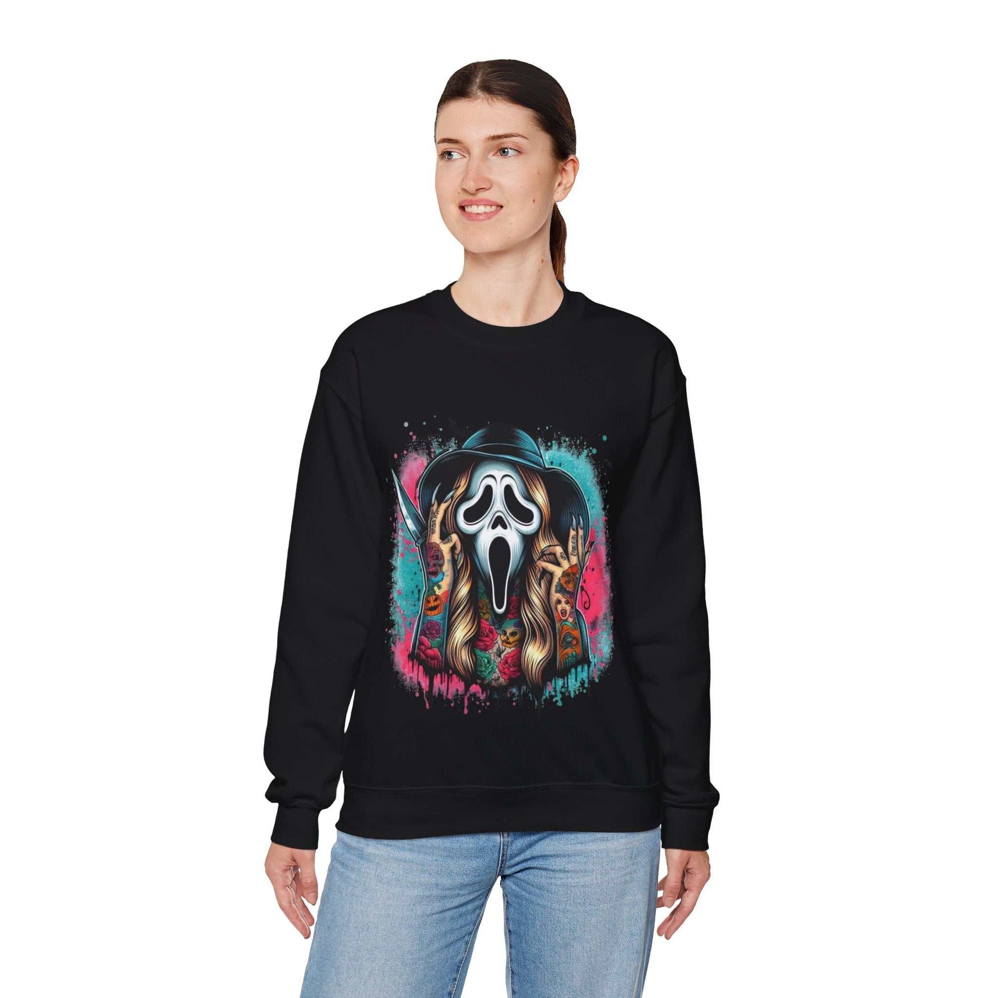 Step out in comfort, embrace your spooky side, and let this sweatshirt be your must-have Halloween apparel. 🎃🔥- Scream Art Crewneck Sweatshirt
