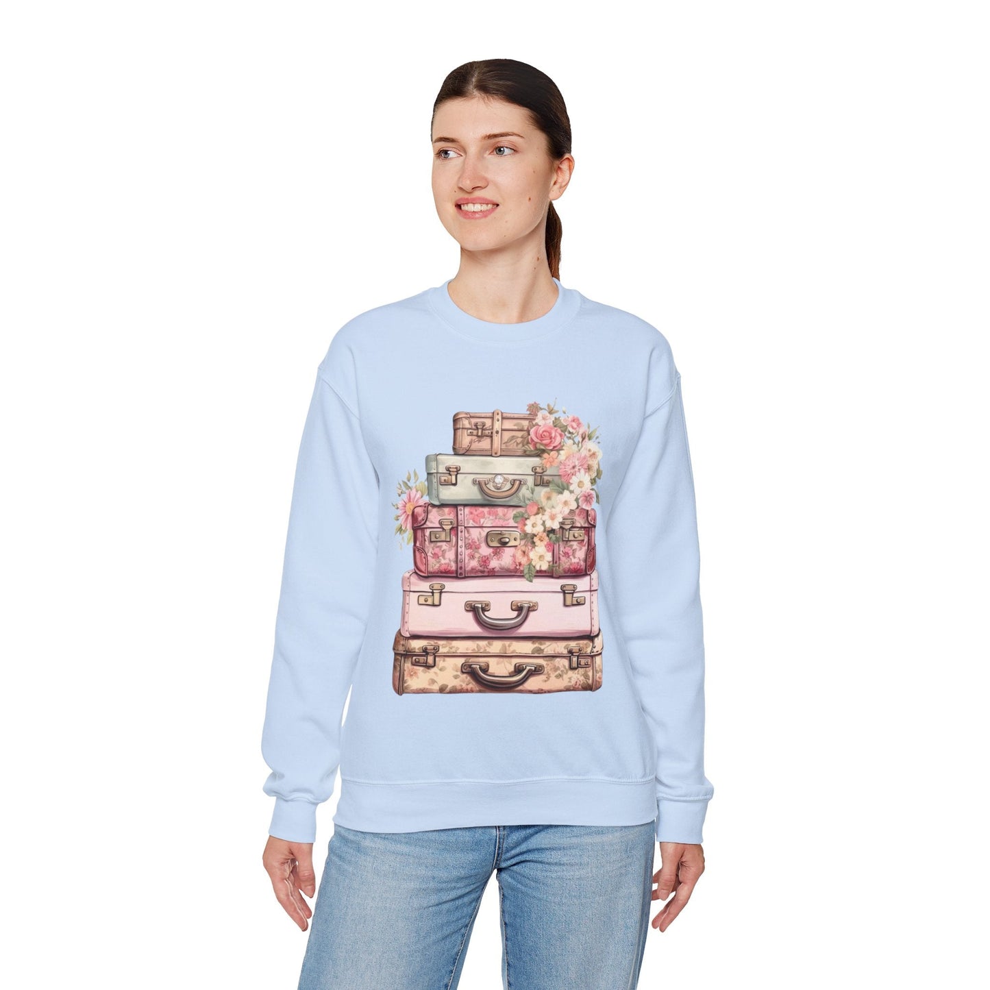 Wrap yourself in wanderlust with our Vintage Floral Luggage Sweatshirt — the perfect cozy companion for dreamers, travelers, and memory makers. 🌍💖 Inspired by the charm of vintage journeys and blooming adventures, this sweatshirt brings the magic of travel closer to your heart. 🎒🌸 - Vintage Floral Luggage Sweatshirt